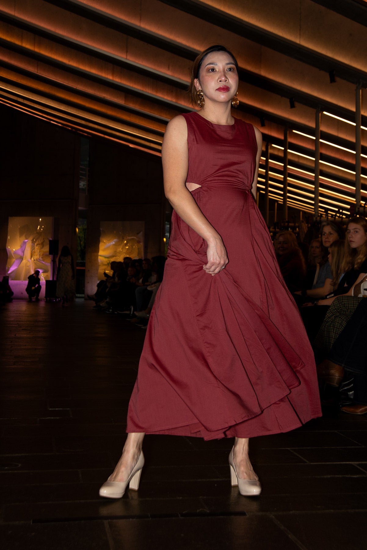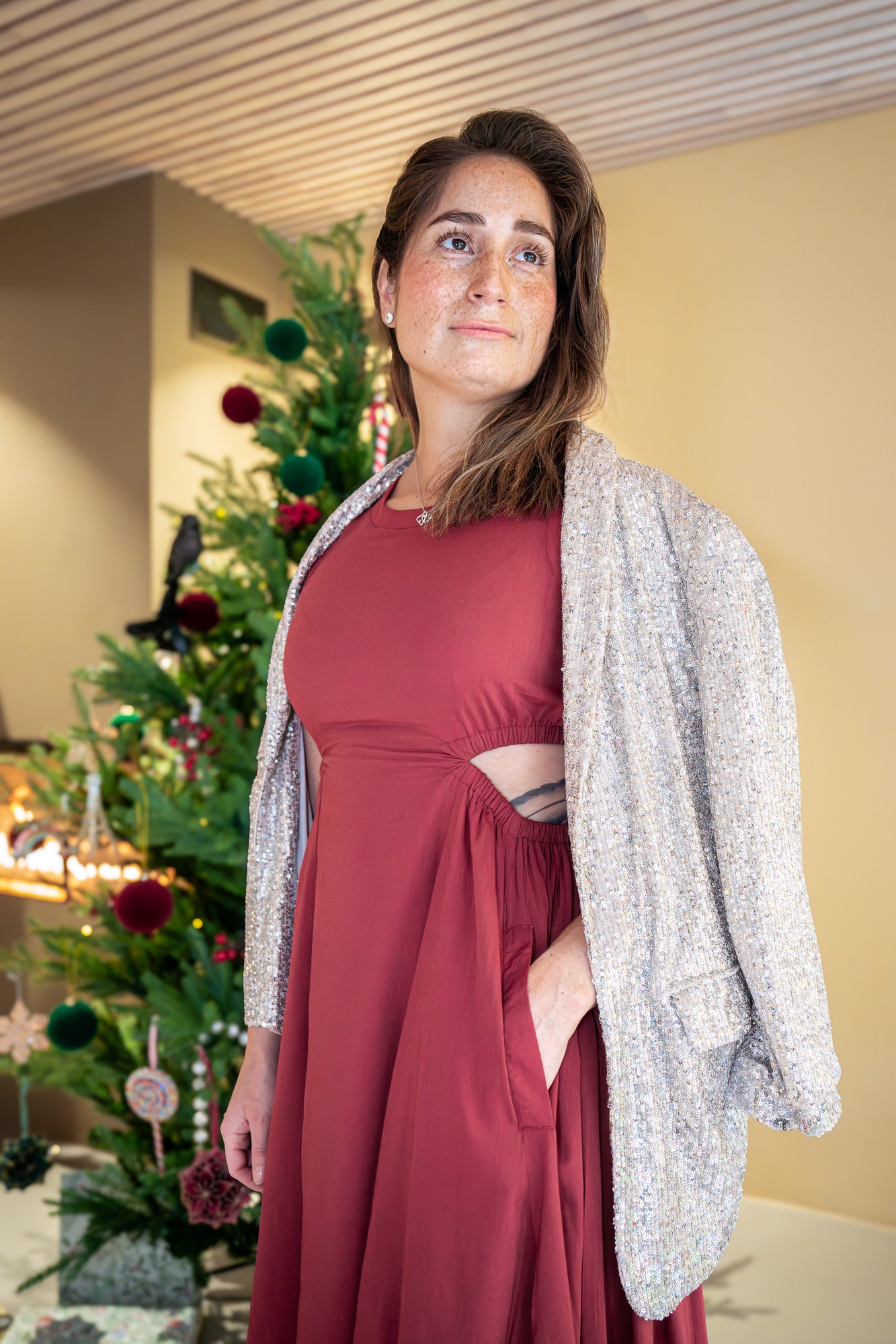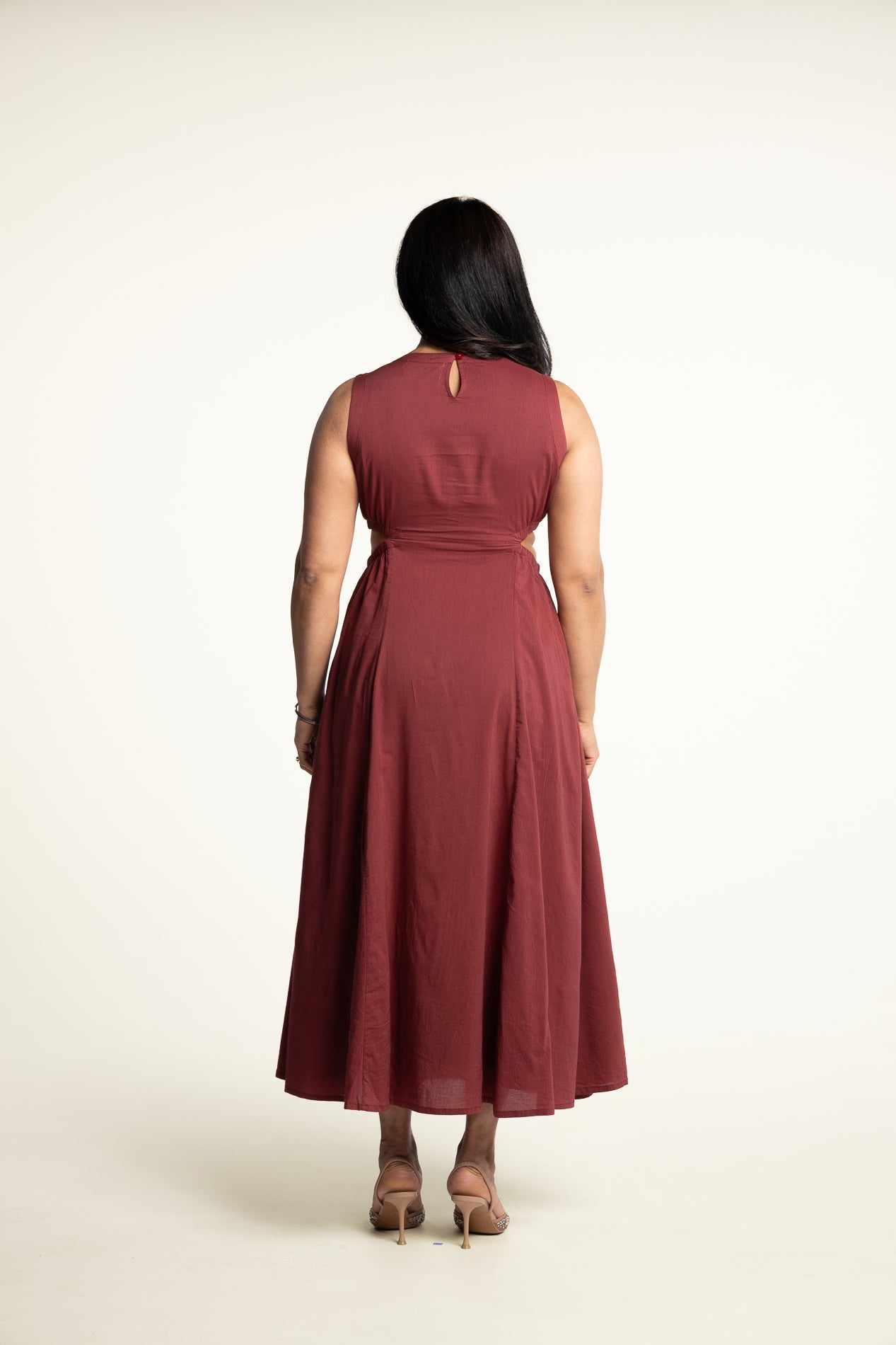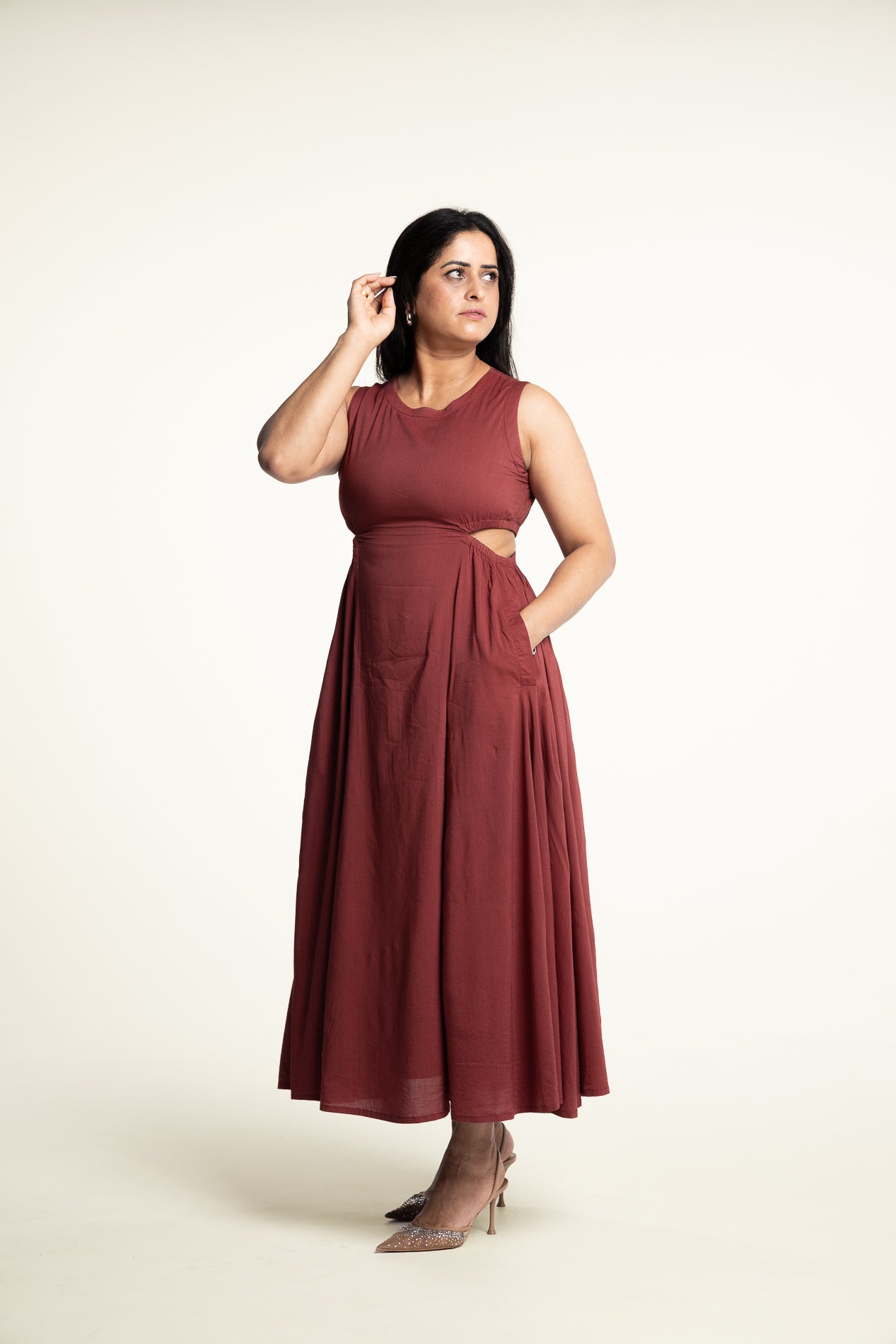 Kjolen er et blikkfang med nydelig rust rød farge og en elegant silhuett. På sidene har kjolen en åpning med behagelig strikk. og praktiske lommer. Kjolen passer perfekt for både hverdagsbruk og spesielle anledninger.