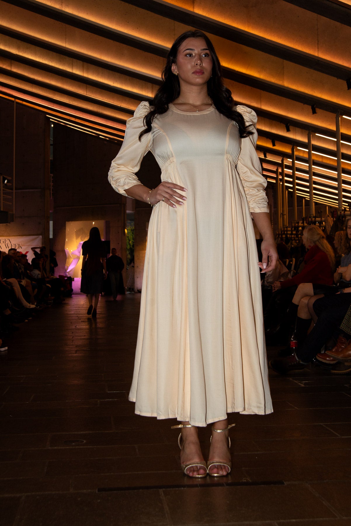 - Stilren design: Elegant smørgul kjole i lett viskose.